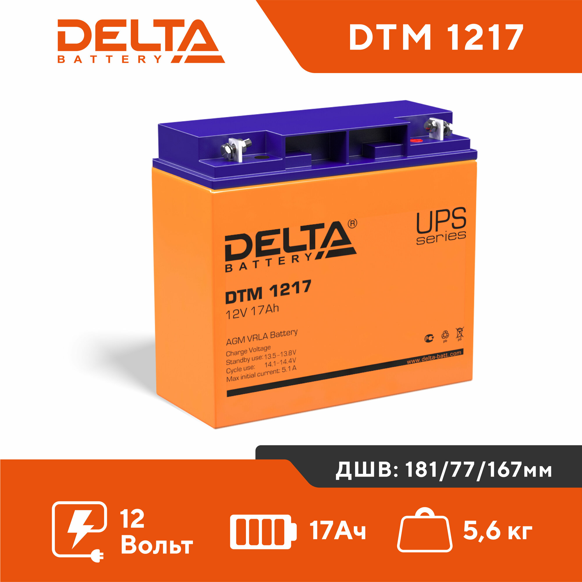 Аккумуляторная батарея для ИБП любых торговых марок, 12 В, 17 Ач, 181х77х167 мм, DELTA, DTM 1217 Комплект - 1 шт .