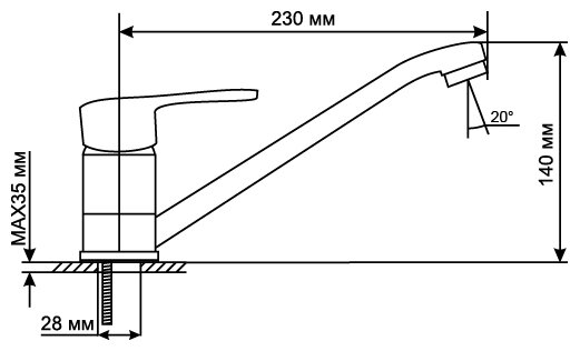 | Длина излива | 230 мм |