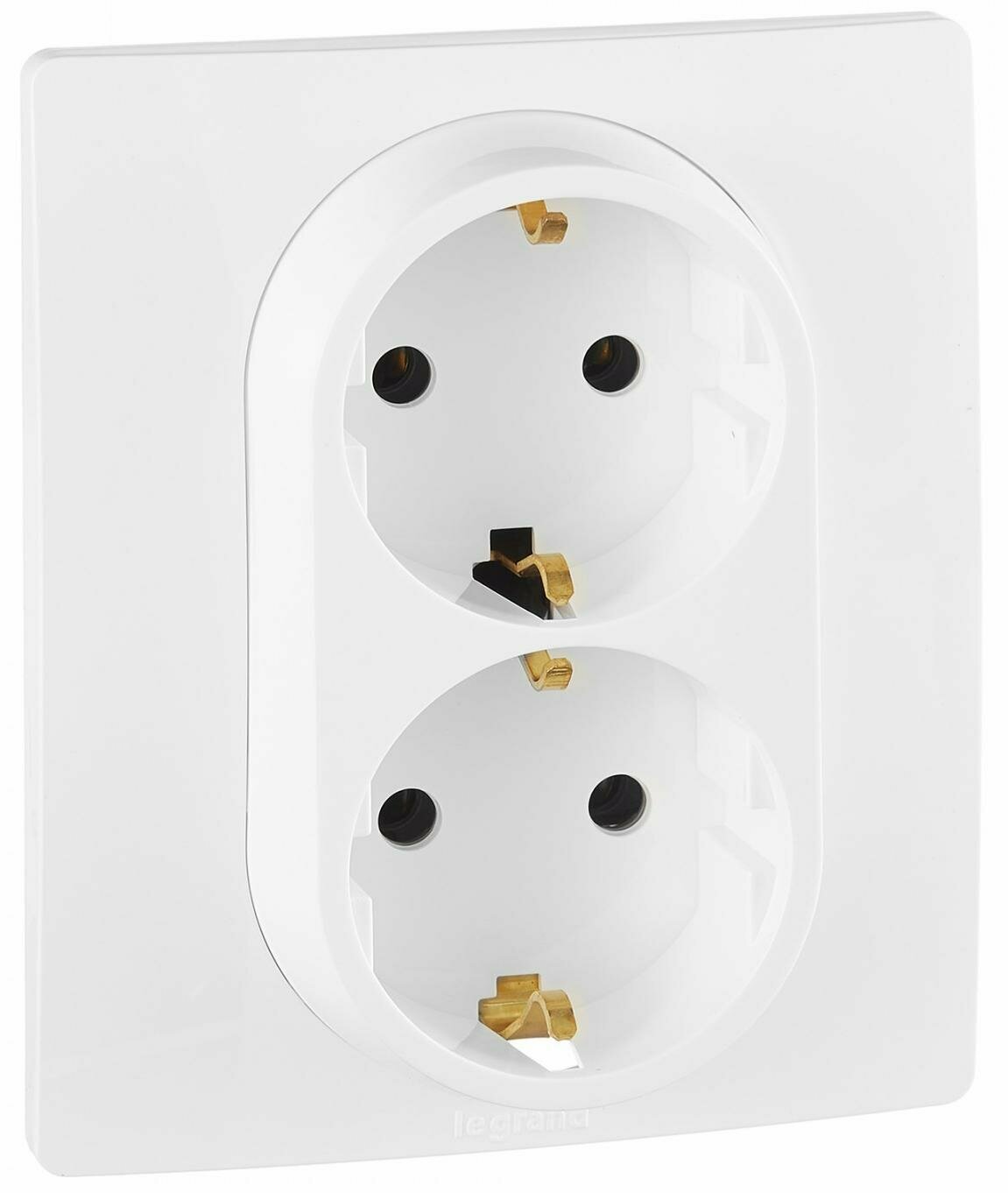 Розетка двойная с заземлением Legrand Etika, с защитными шторками, на клеммах, белый