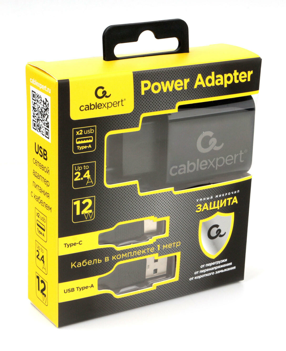 Сетевое зарядное устройство Cablexpert USB 2 порта, 2.4A, черный + кабель 1м Type-C интересное: