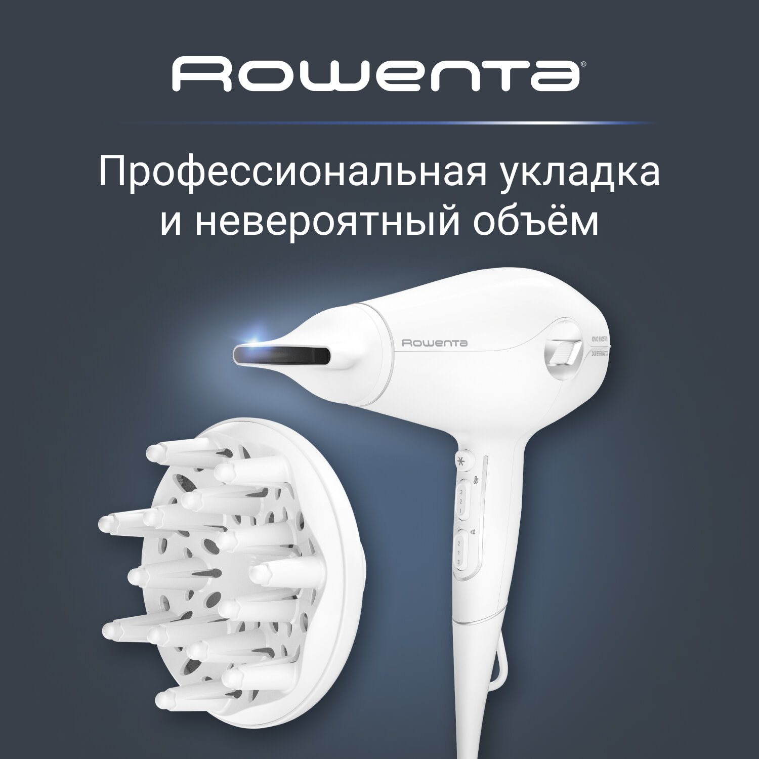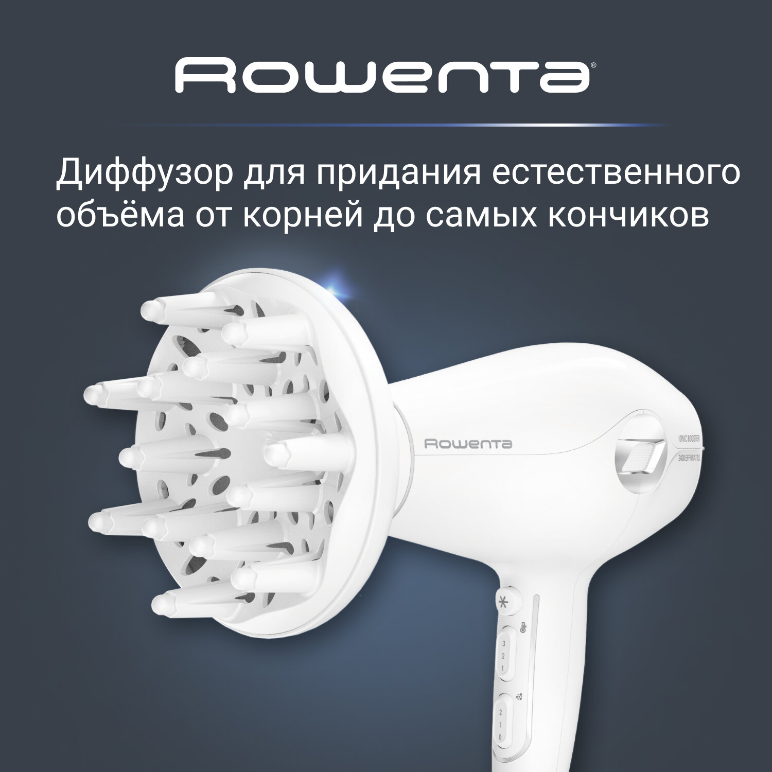 Купить Фен для волос Rowenta Volumizer CV6130F0, белый, мощность 1800 Вт, петля для подвешивания, ультра-холодный воздух