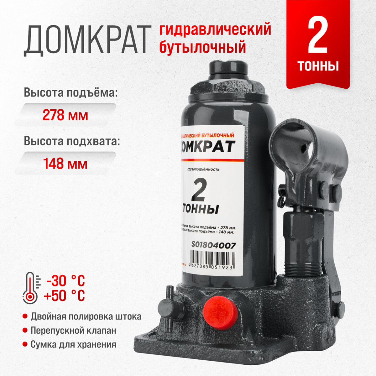 Домкрат гидравлический бутылочный SKYWAY с клапаном 2т h 148-278мм в коробке+сумка интересное: