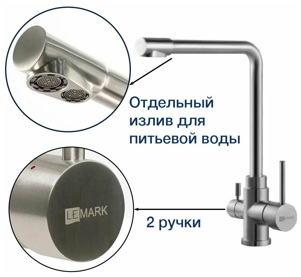 Купить Смеситель Lemark Expert LM5060S для кухни, подключение к фильтру с питьевой водой, сталь