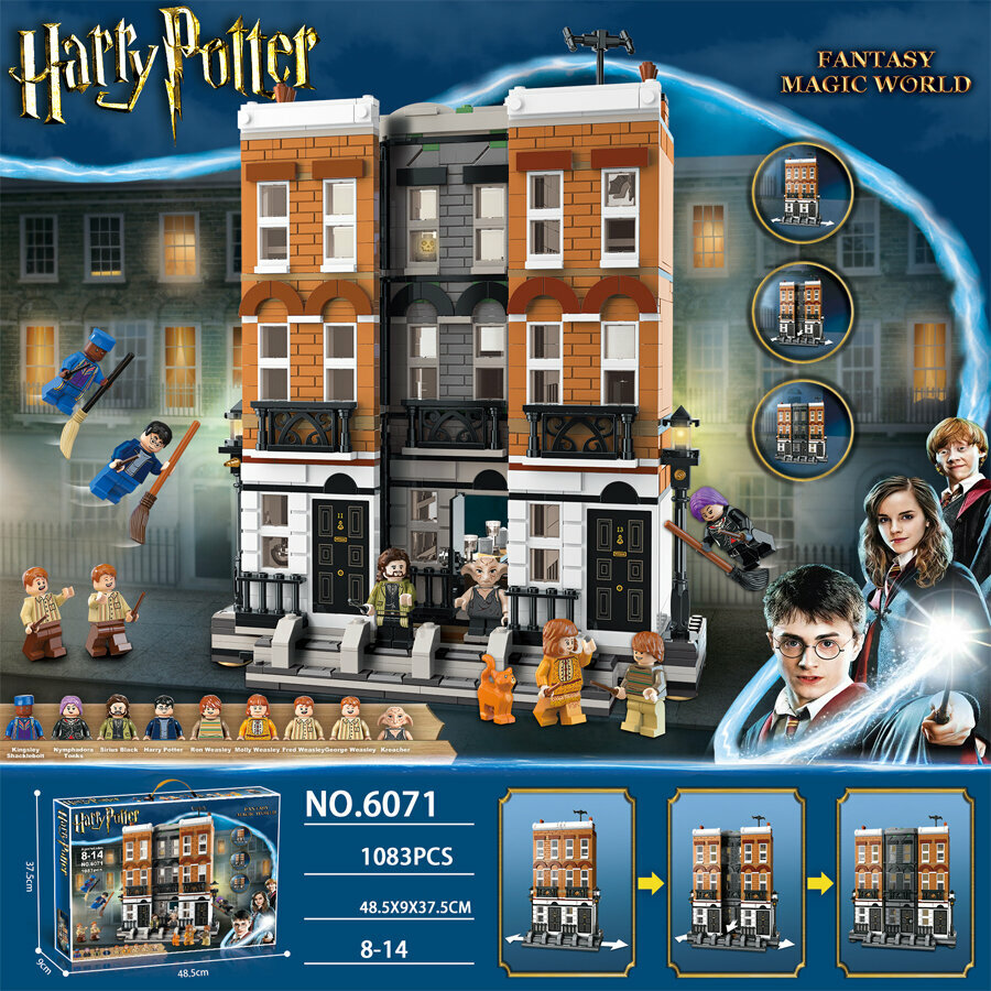 Купить Конструктор Гарри Поттер "Улица Гриммо" 1083 деталей, совместим с лего Harry Potter, для взросылх и детей