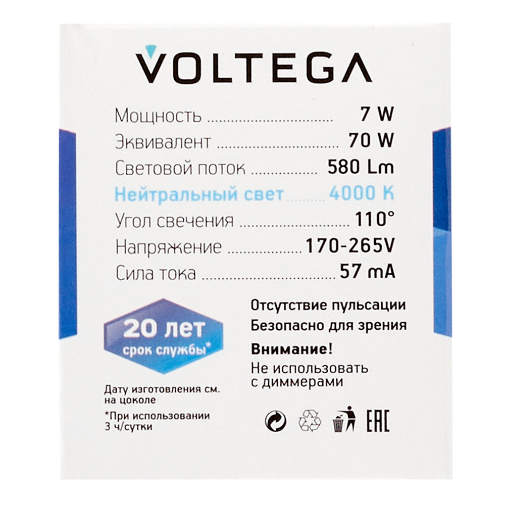 Ниже Вы можете прочитать отзывы на Лампа светодиодная Voltega Simple Sofit 7057, GU10, GU10, 7 Вт, 4000 К, ознакомится с подробными характеристиками, посмотреть интересные обзоры и фотографии на Лампа светодиодная Voltega Simple Sofit 7057, GU10, GU10, 7 Вт, 4000 К.