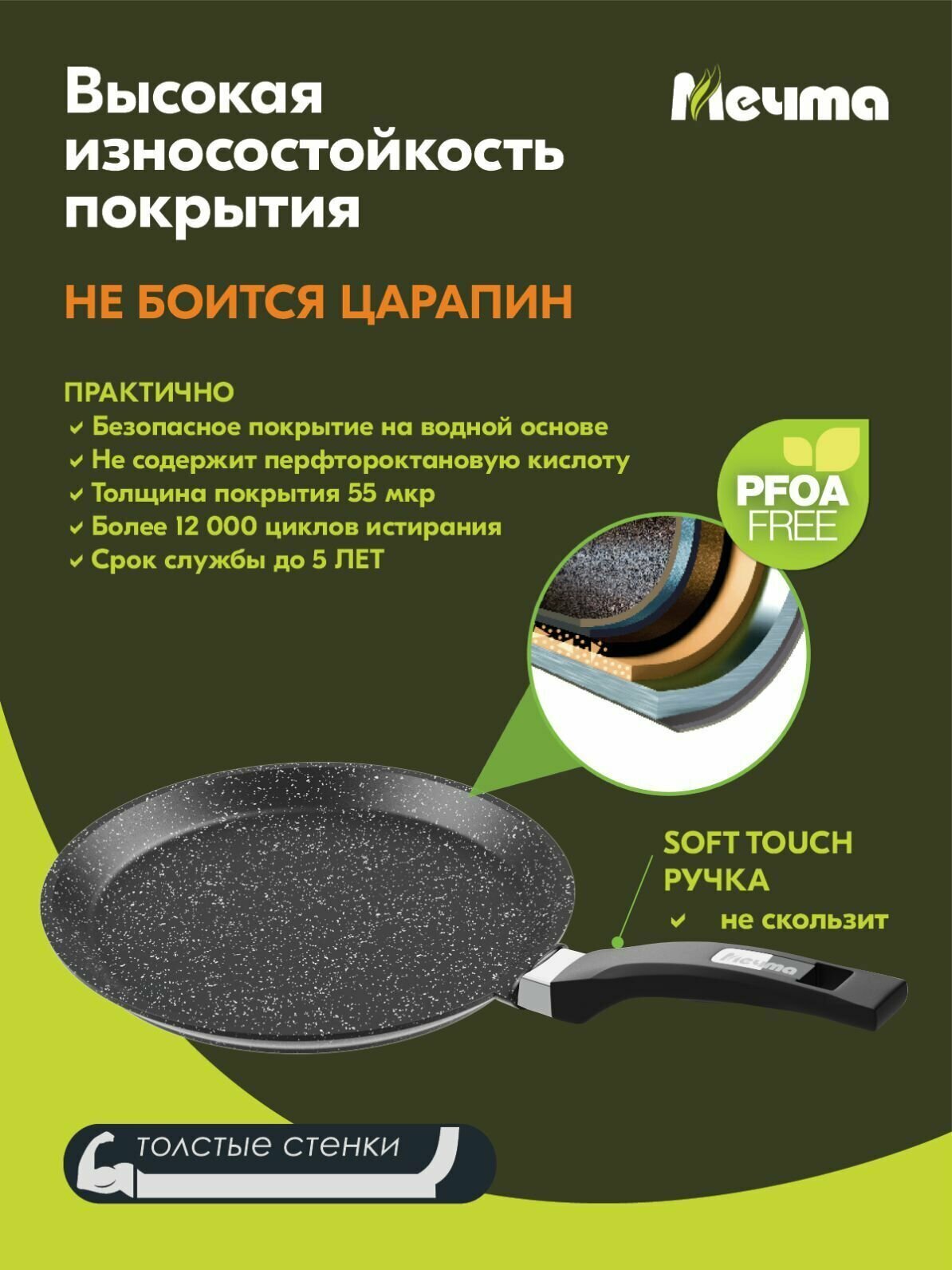 Сковорода блинная 24см Мечта Гранит black интересное: