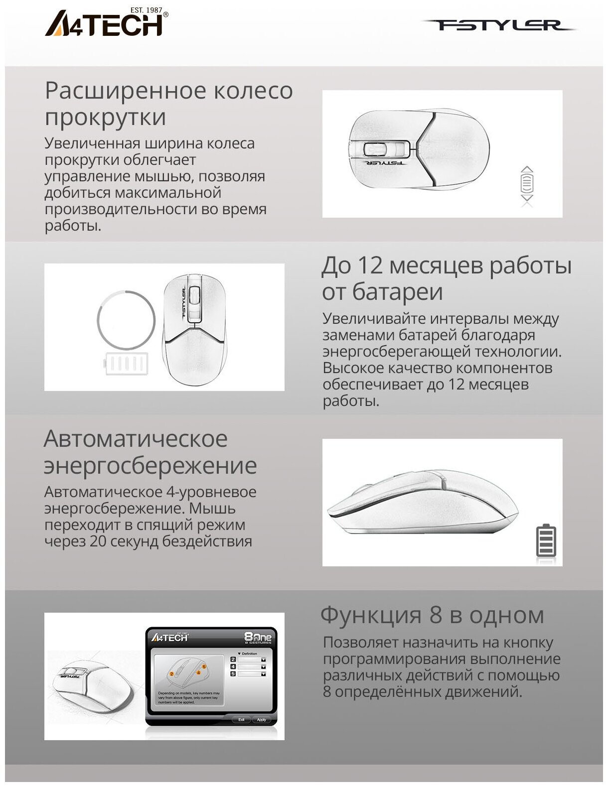 Мышь A4TECH Fstyler FG12, оптическая, беспроводная, белый