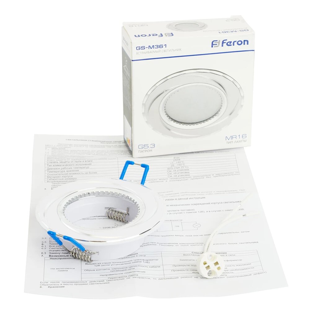 Светильник встраиваемый GS-M361 потолочный MR16 G5.3 белый, FERON 28344 (1 шт.)
