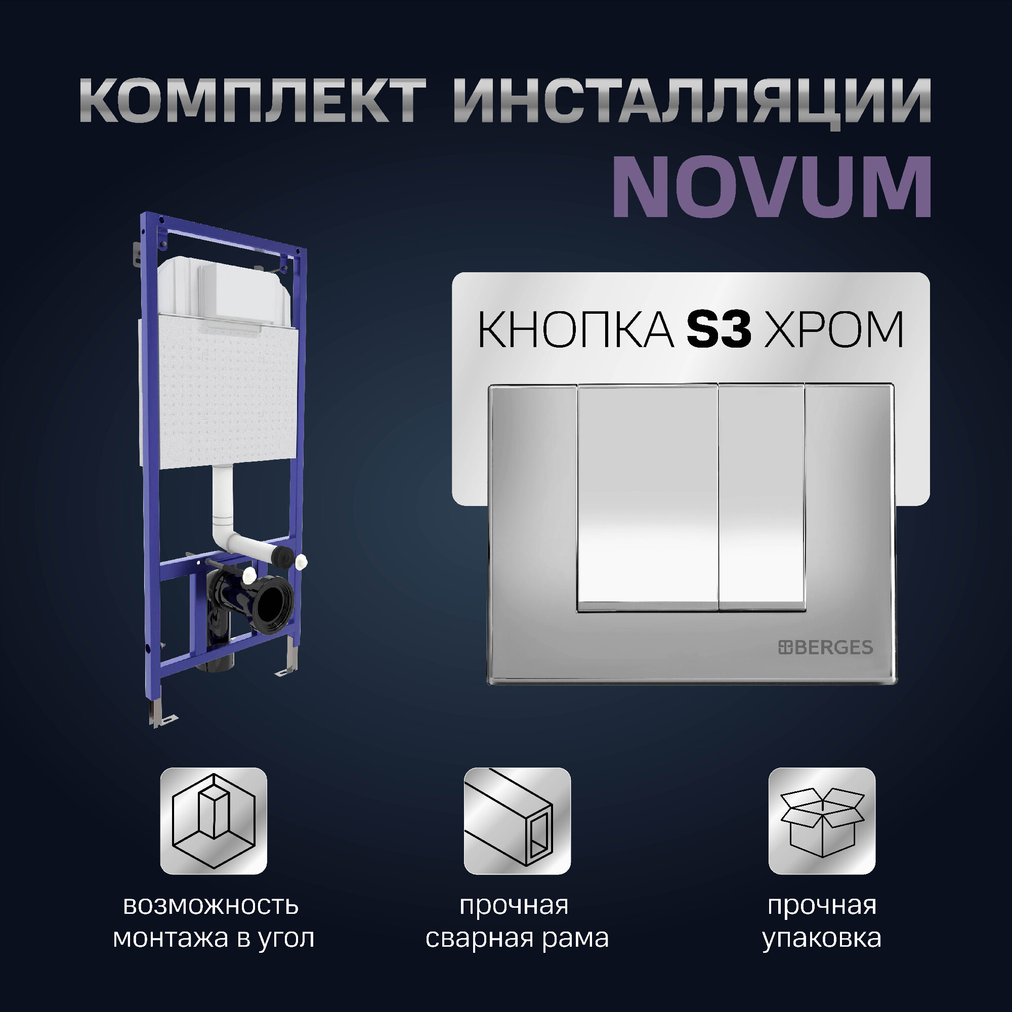 Инсталляция BERGES для скрытого монтажа унитаза NOVUM кнопка S3 хром глянец