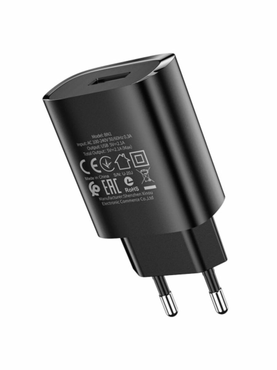 Блок питания сетевой 1 USB Borofone, BN1, 2100mA, пластик, цвет: чёрный