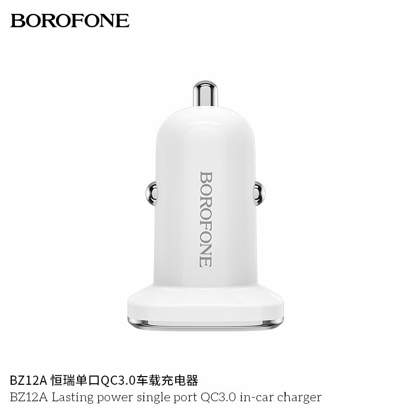 Автомобильное зарядное устройство Borofone BZ12A Lasting Power White QuickCharge 3.0, 1 USB-порт 3А, белый