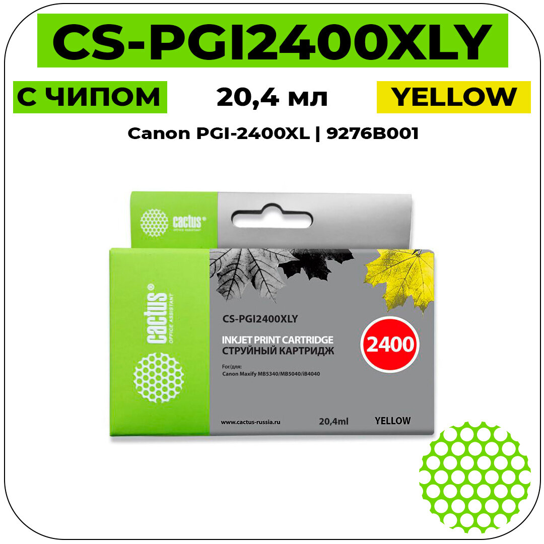 Картридж Cactus CS-PGI2400XLY для Canon MAXIFY iB4040/МВ5040/МВ5340 желтый