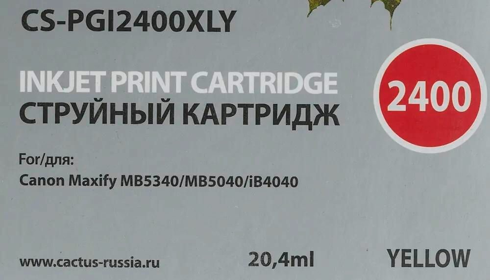 Cartridge ink Cactus CS-PGI2400XLY yellow (20.4ml) for Canon MAXIFY iB4040/ МВ5040/ МВ5340