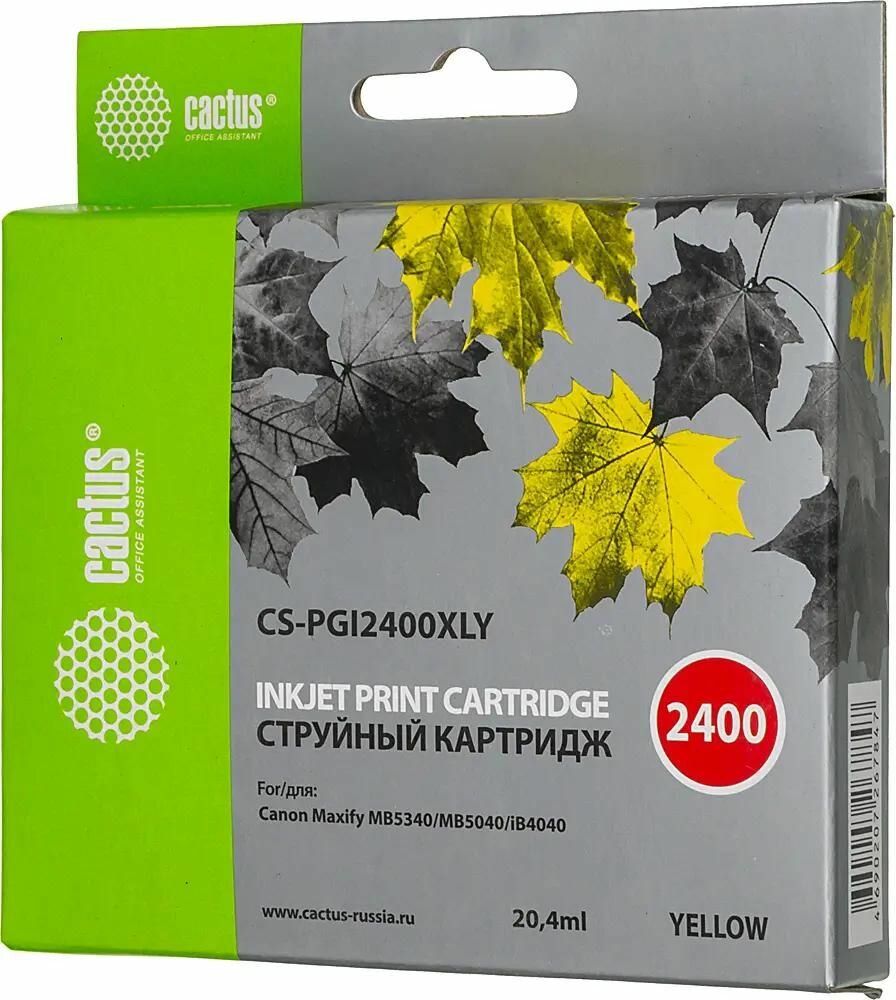 Картридж струйный Cactus CS-PGI2400XLY желтый 20.4мл для Canon MAXIFY iB4040 МВ5040 МВ5340