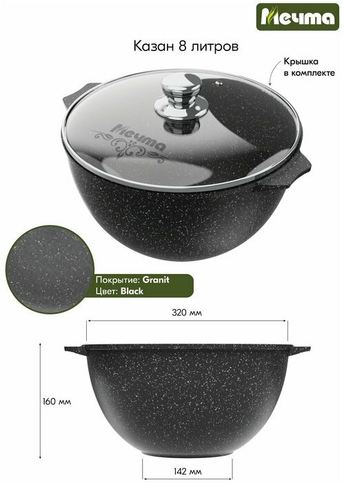 Казан Мечта 8л АП Гранит black арт. 58802