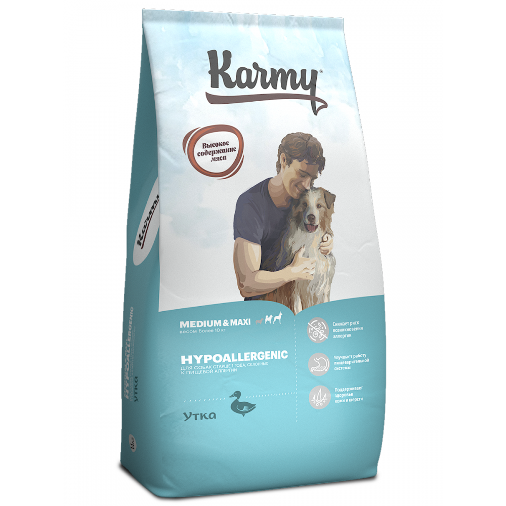 Корм Karmy Medium & Maxi Hypoallergenic для собак средних и крупных пород, склонных к пищевой аллергии, с уткой, 14 кг