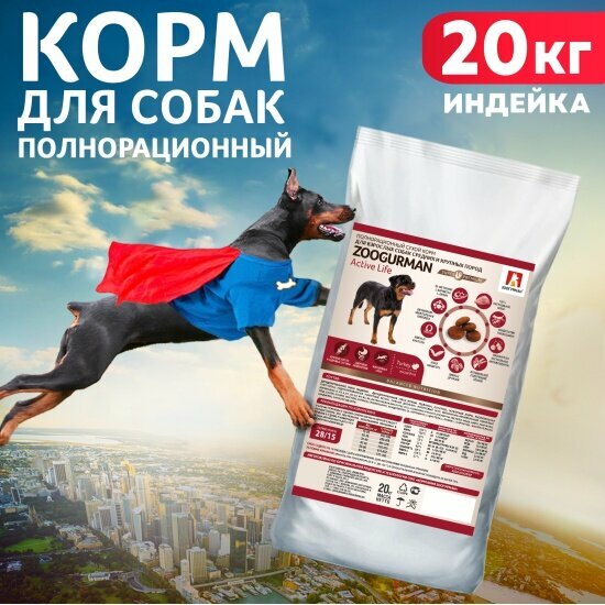 Зоогурман Сухой корм для активных собак средних и крупных пород,, индейка, 20кг
