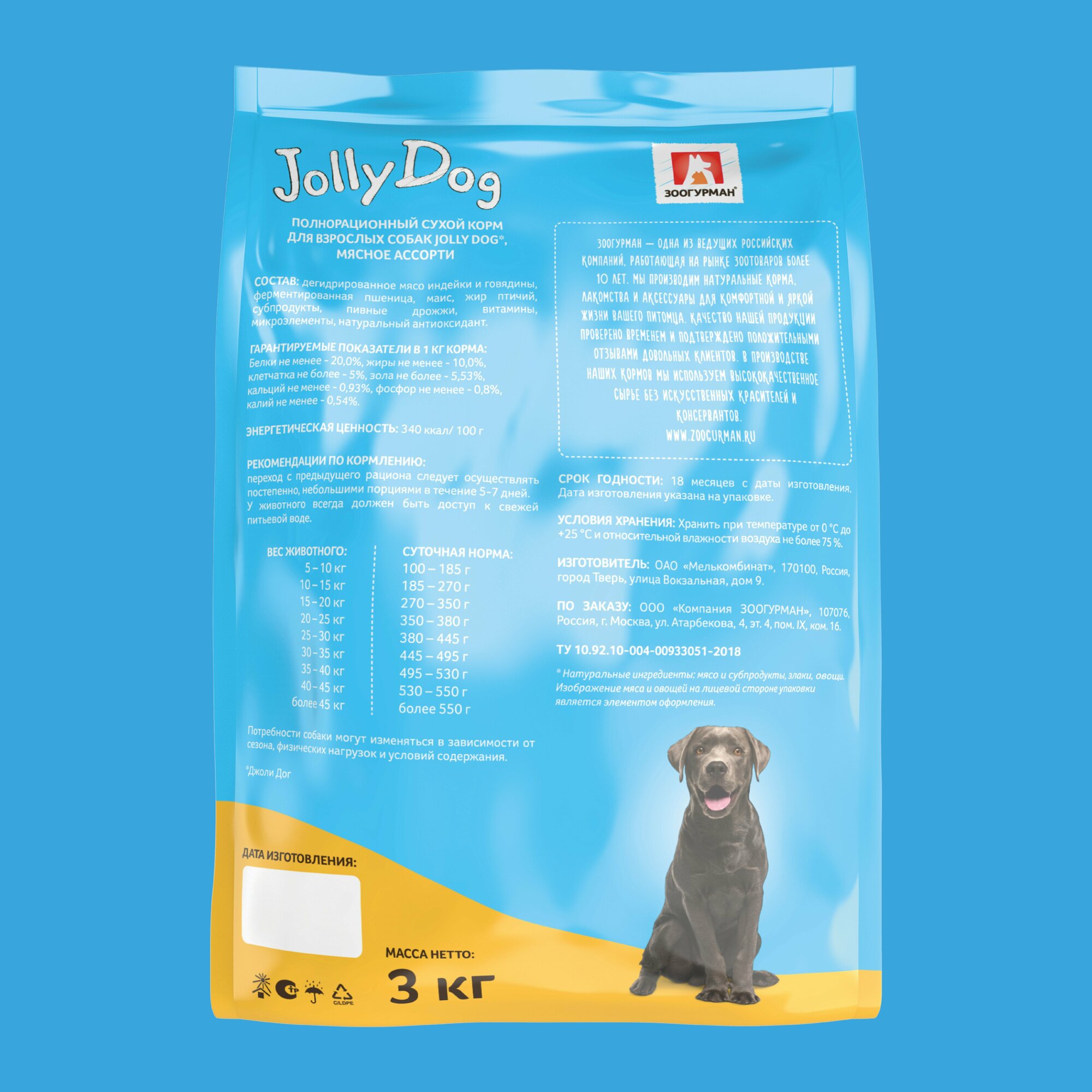 Корм для собак зоогурман Jolly Dog Мясное ассорти сух. 3кг