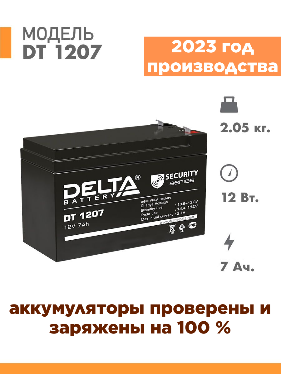 Аккумуляторная батарея Delta DT 1207, аккумулятор для детского электромобиля, мотоцикла, эхолота, фонарика