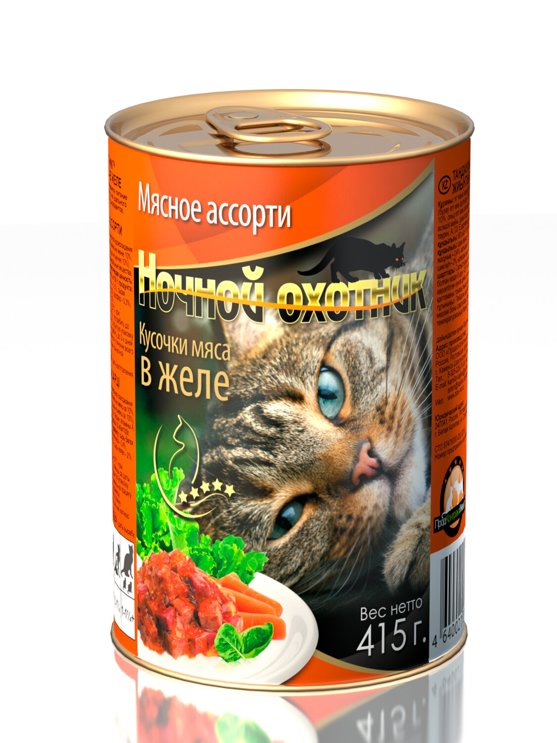 Консервированный корм Ночной охотник, 415 гр х20шт. Мясное ассорти кусочки в желе