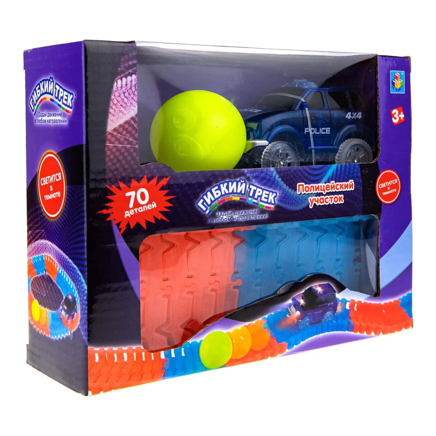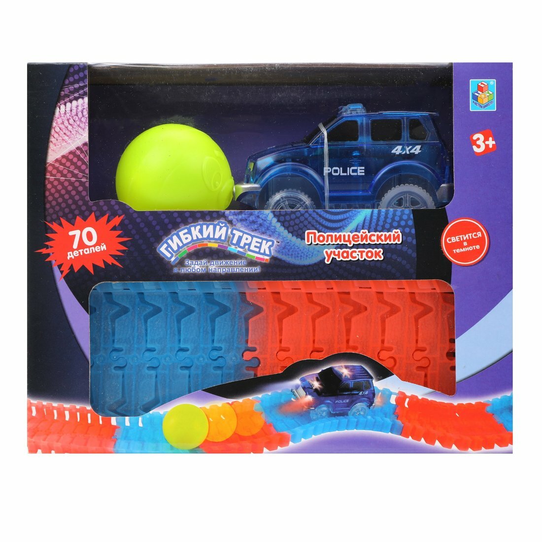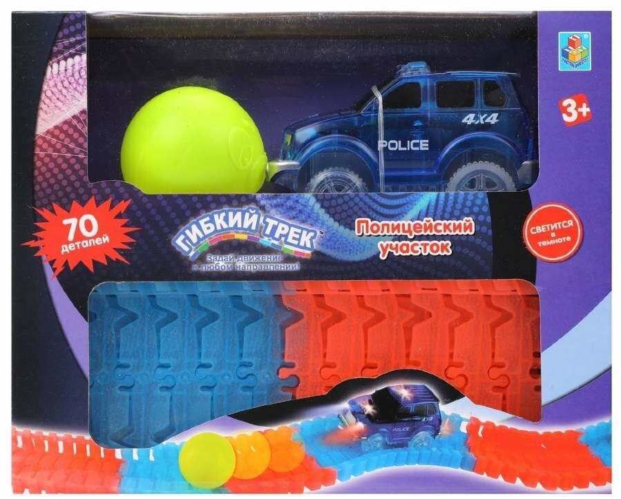 Игровой набор 1TOY Гибкий трек "Полицейский участок", 70 деталей, дорога светится в темноте