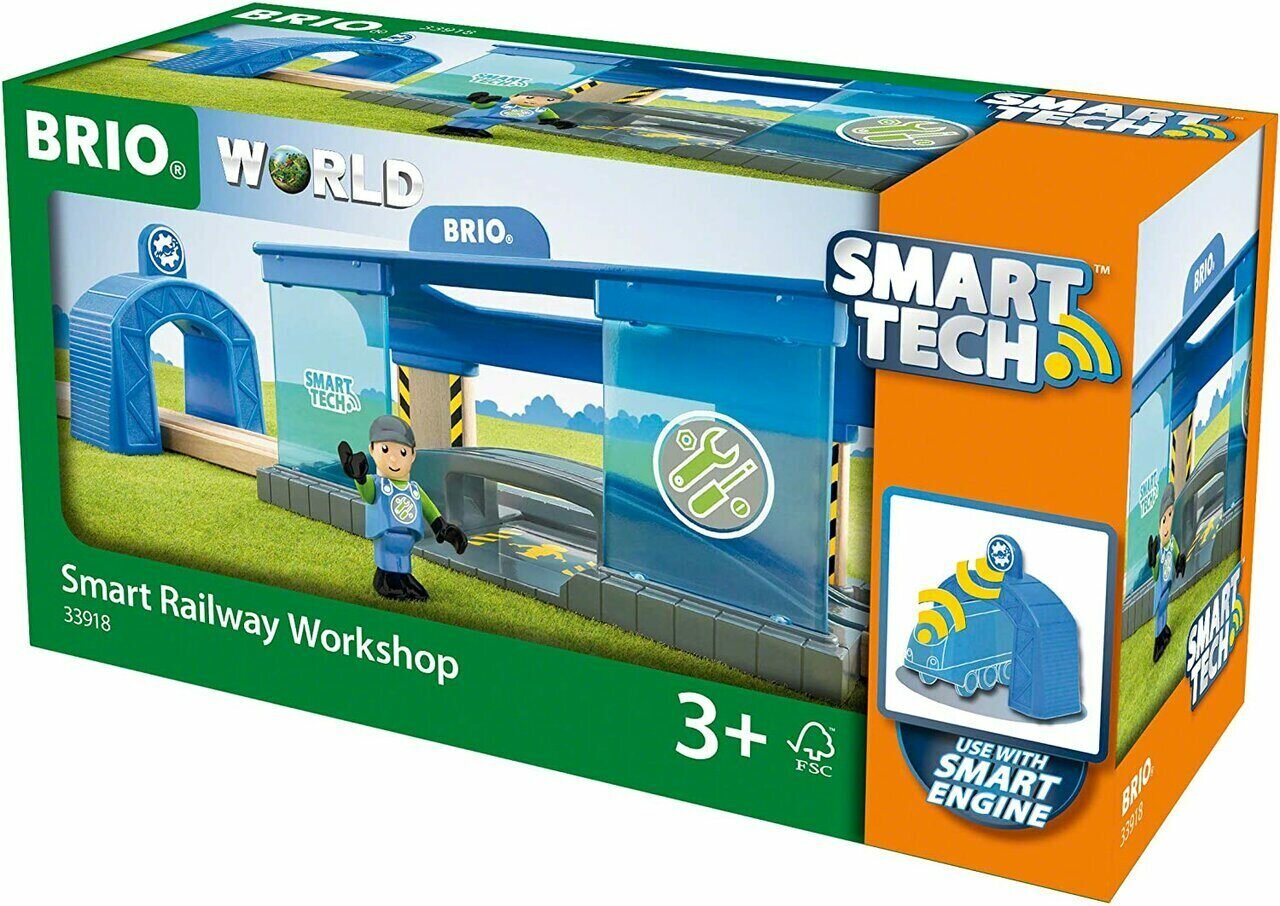 Игровой набор BRIO 33918 Smart Tech Вагоноремонтная мастерская, тоннель 3 элемента