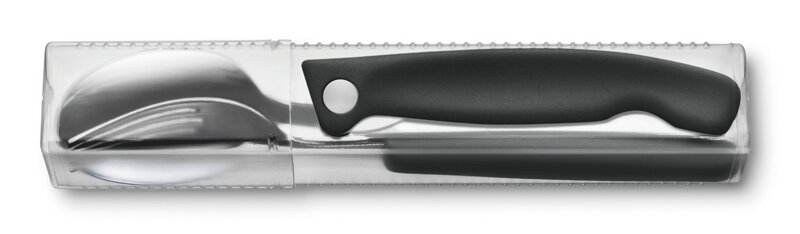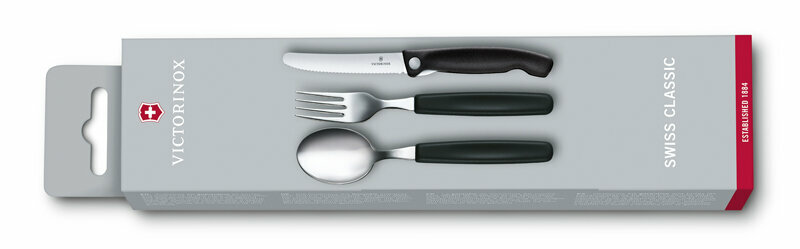 Набор из 3 столовых приборов VICTORINOX Swiss Classic: складной нож для овощей, вилка, ложка, чёрный