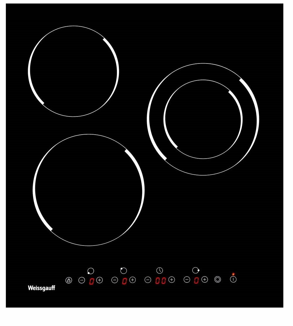 Стеклокерамическая панель Weissgauff HVF 431 B двухконтурная зона нагрева, 3 года гарантии, 45 см ширина, таймер