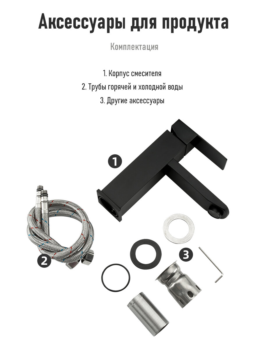 | Комплектация | смеситель, аэратор, подводка, набор крепежа |