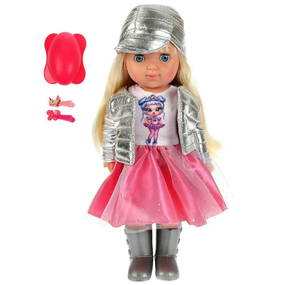 Кукла Карапуз озвученная,Полина 35см, закрывает глазки, 50 песен и фраз, 3 аксессуара