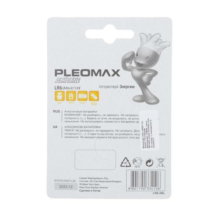 Батарейка алкалиновая Pleomax, AA, LR6-2BL, 1.5В, блистер, 2 шт./в упаковке штук: 1