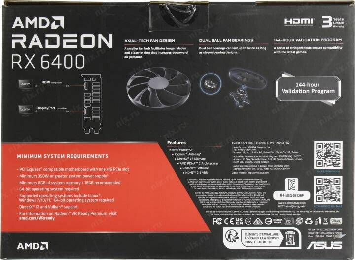 | Название видеокарты | AMD Radeon RX 6400 |