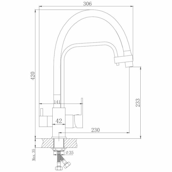| Функции | гибкий излив с подключением фильтра питьевой воды |