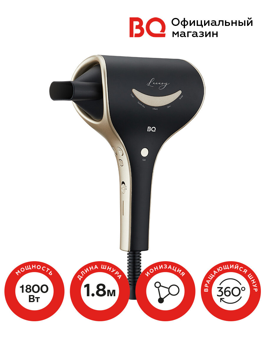 Фен BQ HD1211M 1800 Вт, черный/золотой интересное: