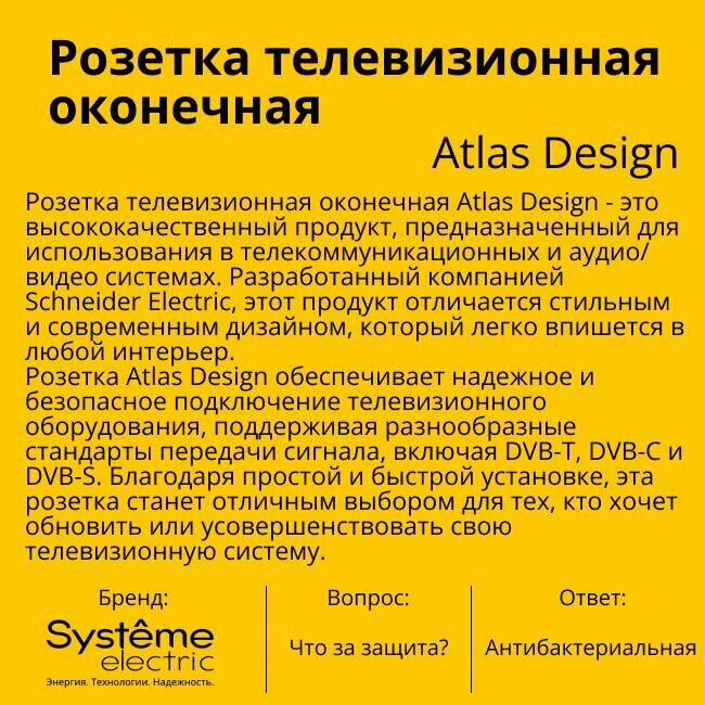 Розетка TV ATLASDESIGN, оконечная, бежевый | код. ATN000291 | Schneider Electric (3шт. в упак.)