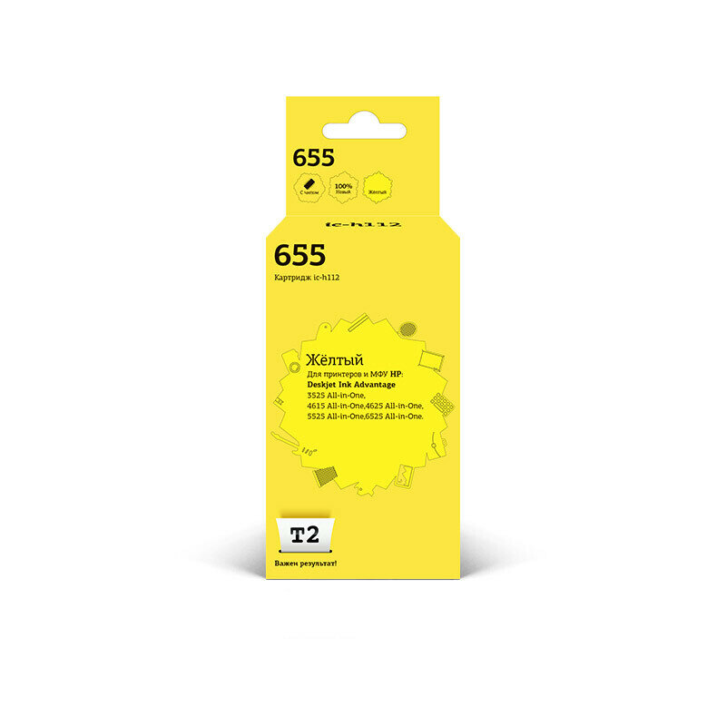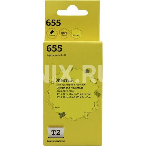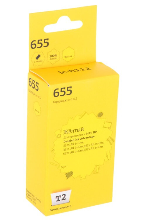 Картридж T2 IC-H112/№655 для HP Ink Advantage 3525 A-i-O/4615 A-i-O/4625 A-i-O/5525 A-i-O/6525 A-i-O Yellow