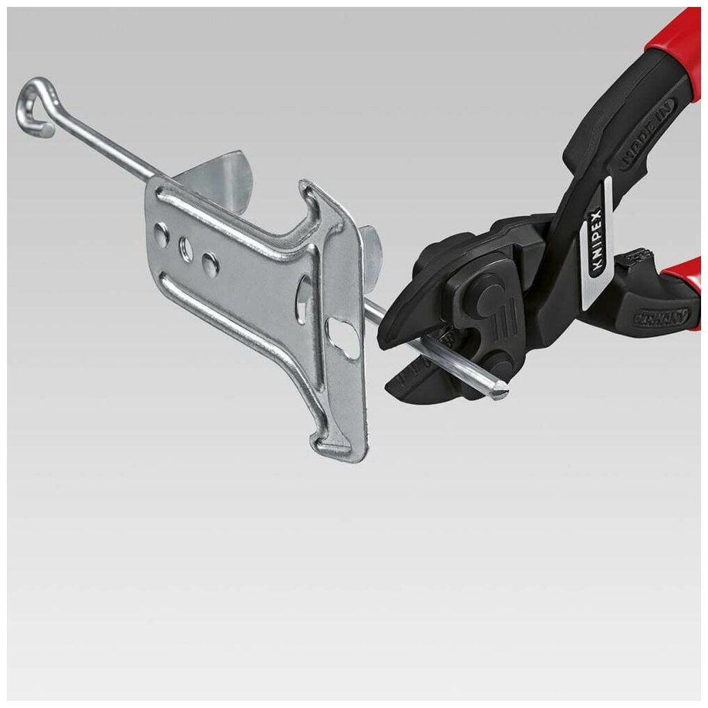 Болторез компактный KNIPEX KN-7101200, рез: мягкая проволока Ø 6 мм, проволока средней твёрдости Ø 5.2 мм, твёрдая проволока Ø 4 мм, рояльная струна (HRC 59) Ø 3.6 мм, L-200 мм, чёрный, обливные рукоятки