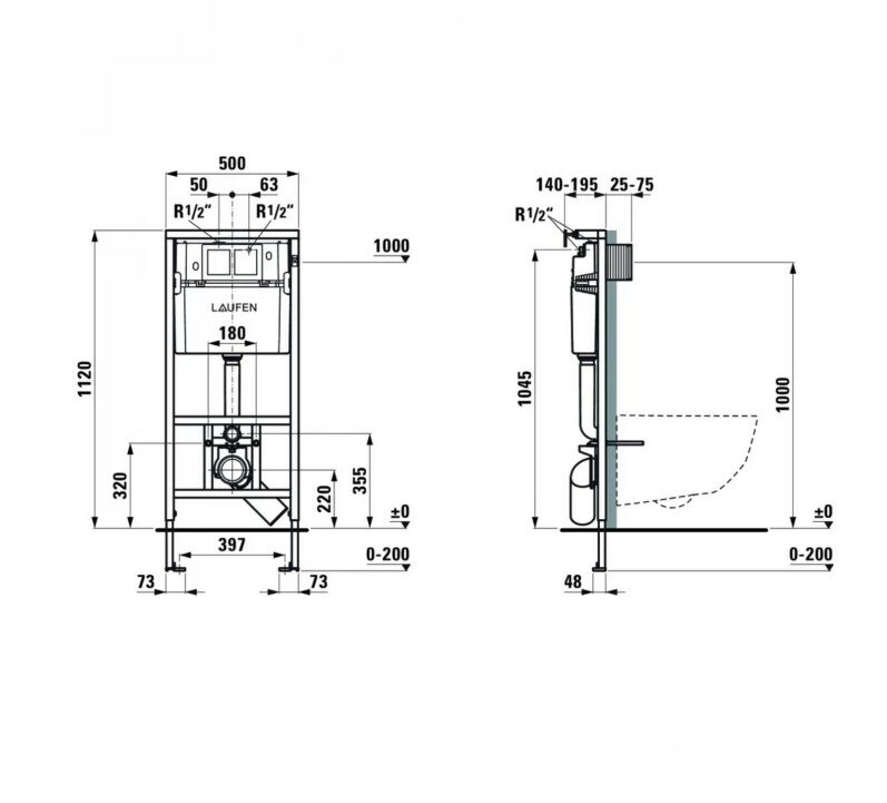 Инсталляция Laufen 894660 для унитаза со смывным бачком без клавиши смыва