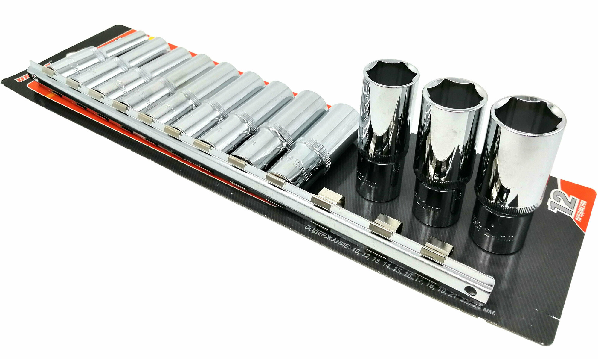 ombra набор торцевых головок глубоких на держателе-рельс 1/2"dr 10-24 мм., 12 предметов