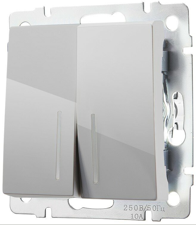 Проходной двухклавишный выключатель/переключатель с подсветкой Werkel W1122165 серебряный матовый IP20