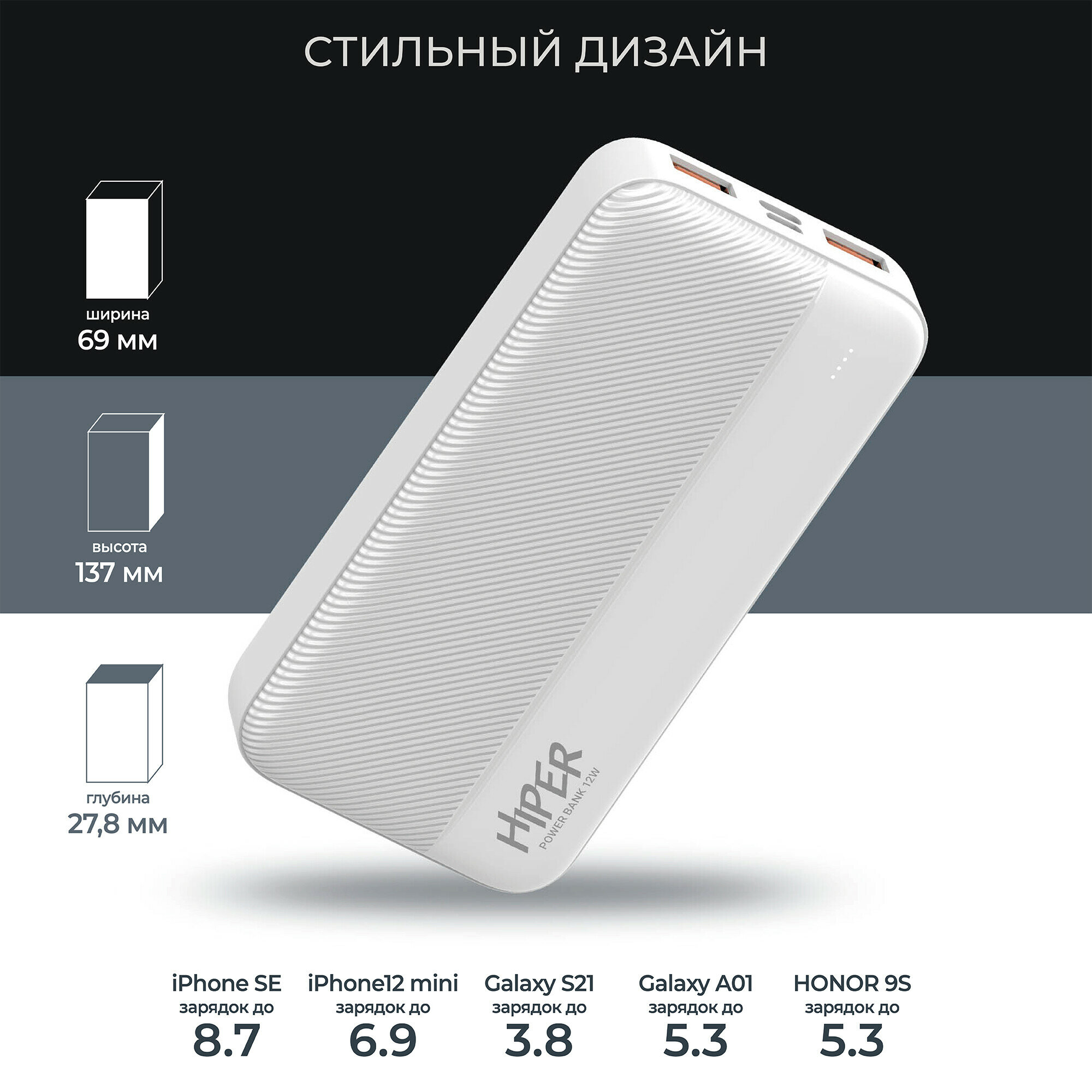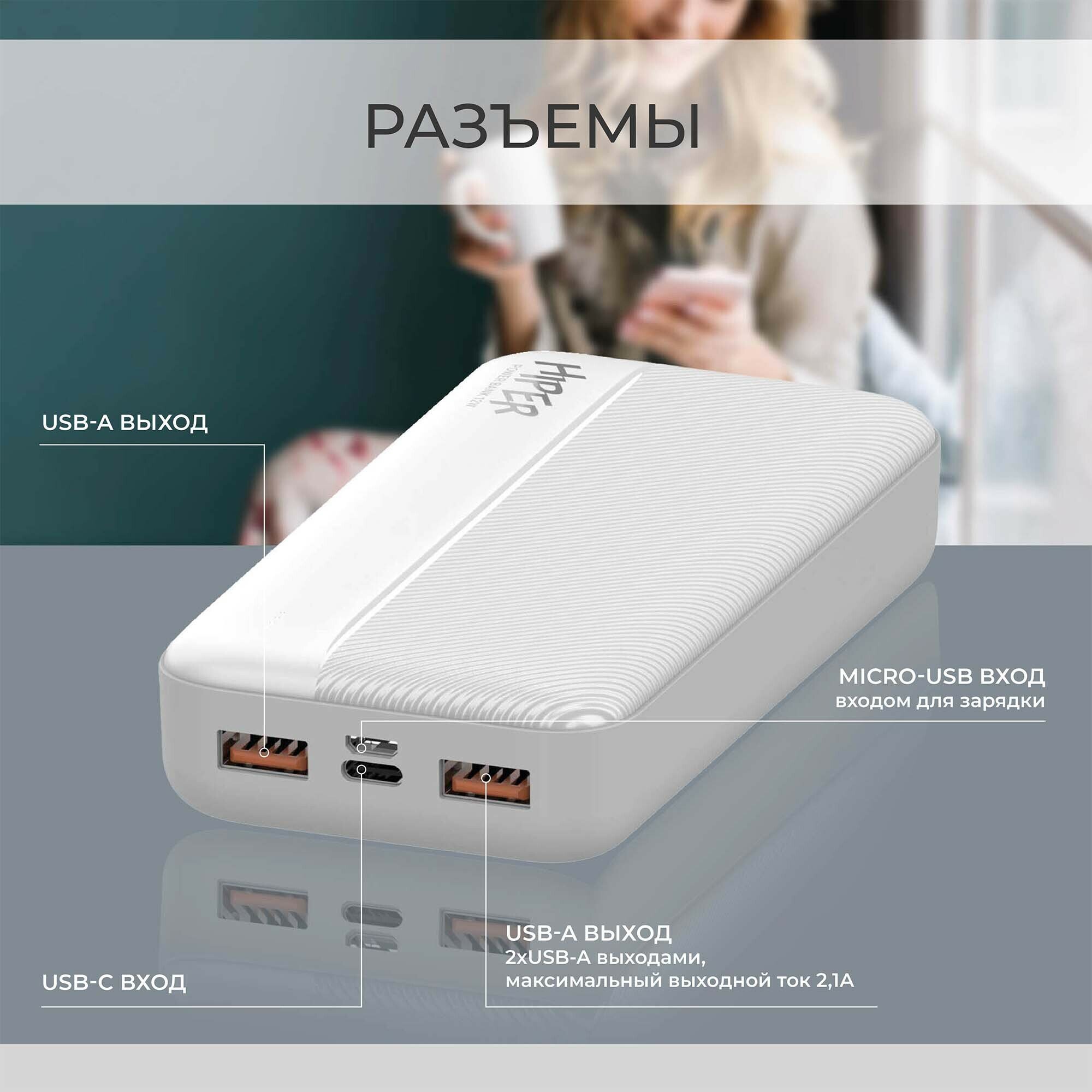 СохранитьВнешний аккумулятор (Power Bank) HIPER SM20000, 20000мAч, белый [sm20000 white] интересное: