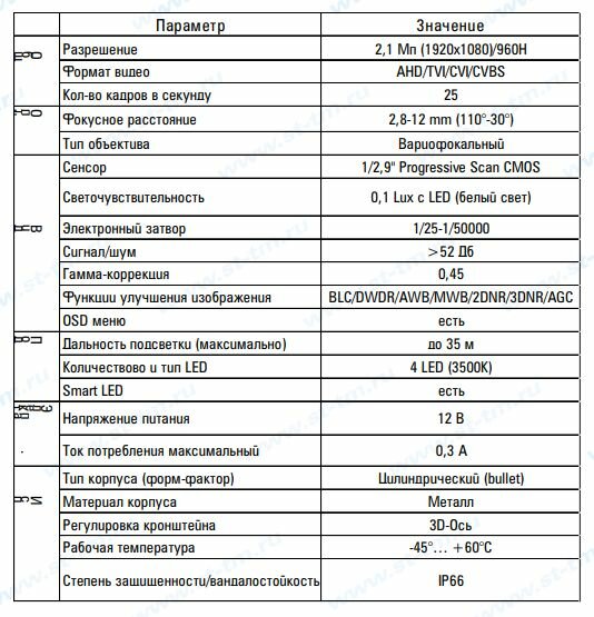 Видеокамера ST-S2125 PRO FULLCOLOR, цветная,2,1MP/960H, уличная 4 в , 2,8-12мм интересное: