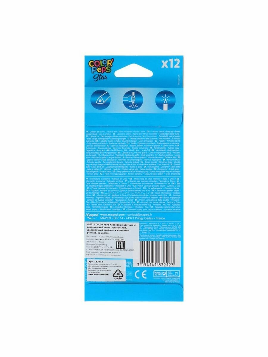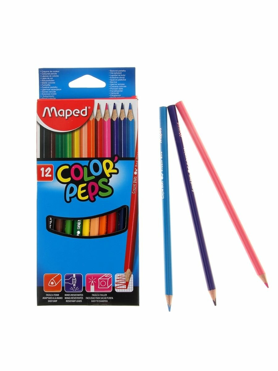 Карандаши цветные MAPED COLOR PEPS макси , треугольные, ударопрочный грифель, в картонном футляре, 12 цв