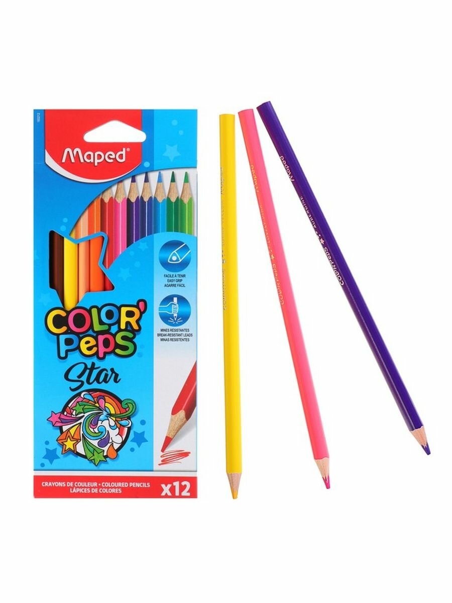 Купить Карандаши трёхгранные, 12 цветов, Maped Color Peps Maxi, утолщённые, европодвес, цвет микс, материал графит