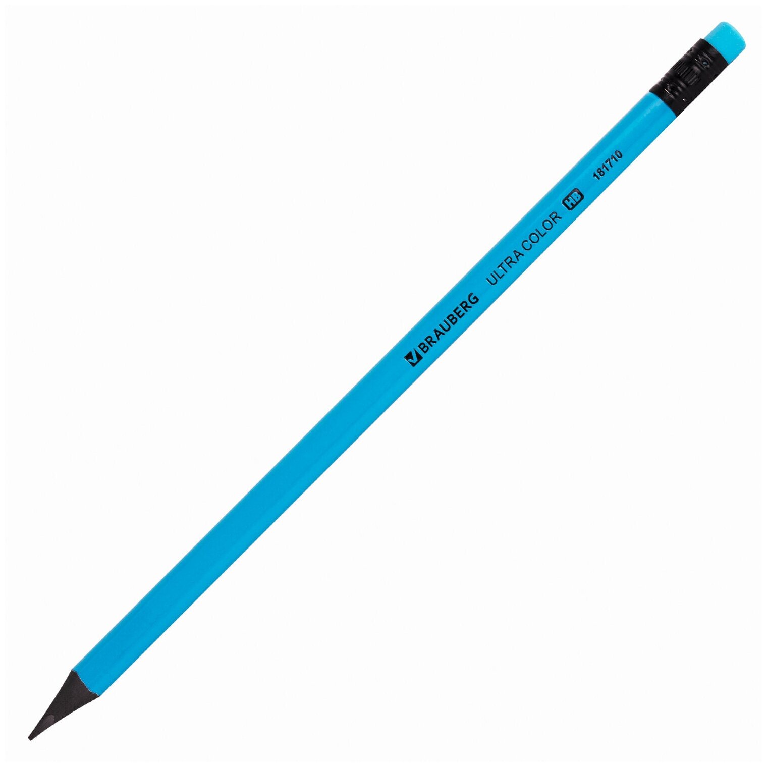Карандаши простые чернографитные Brauberg Ultra Color 12 шт., HB, с ластиком, пластиковые, 181710
