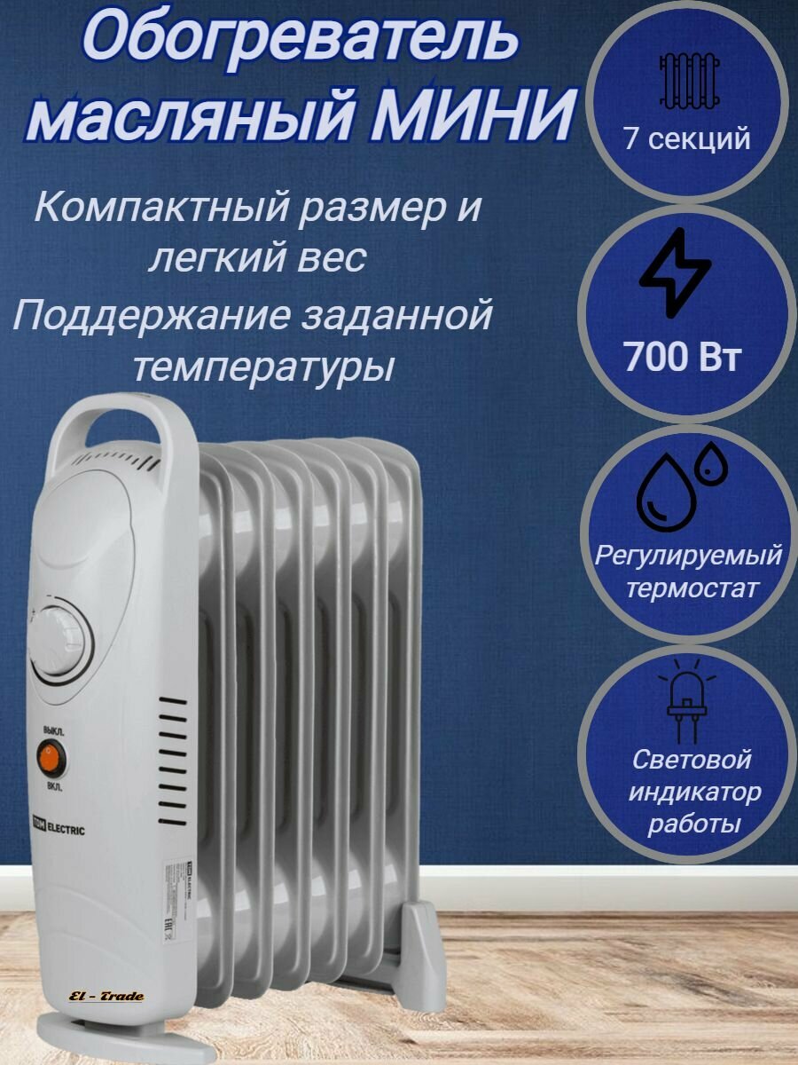 Масляный радиатор МИНИ-7, 700 Вт, 7 секций, термостат, TDM