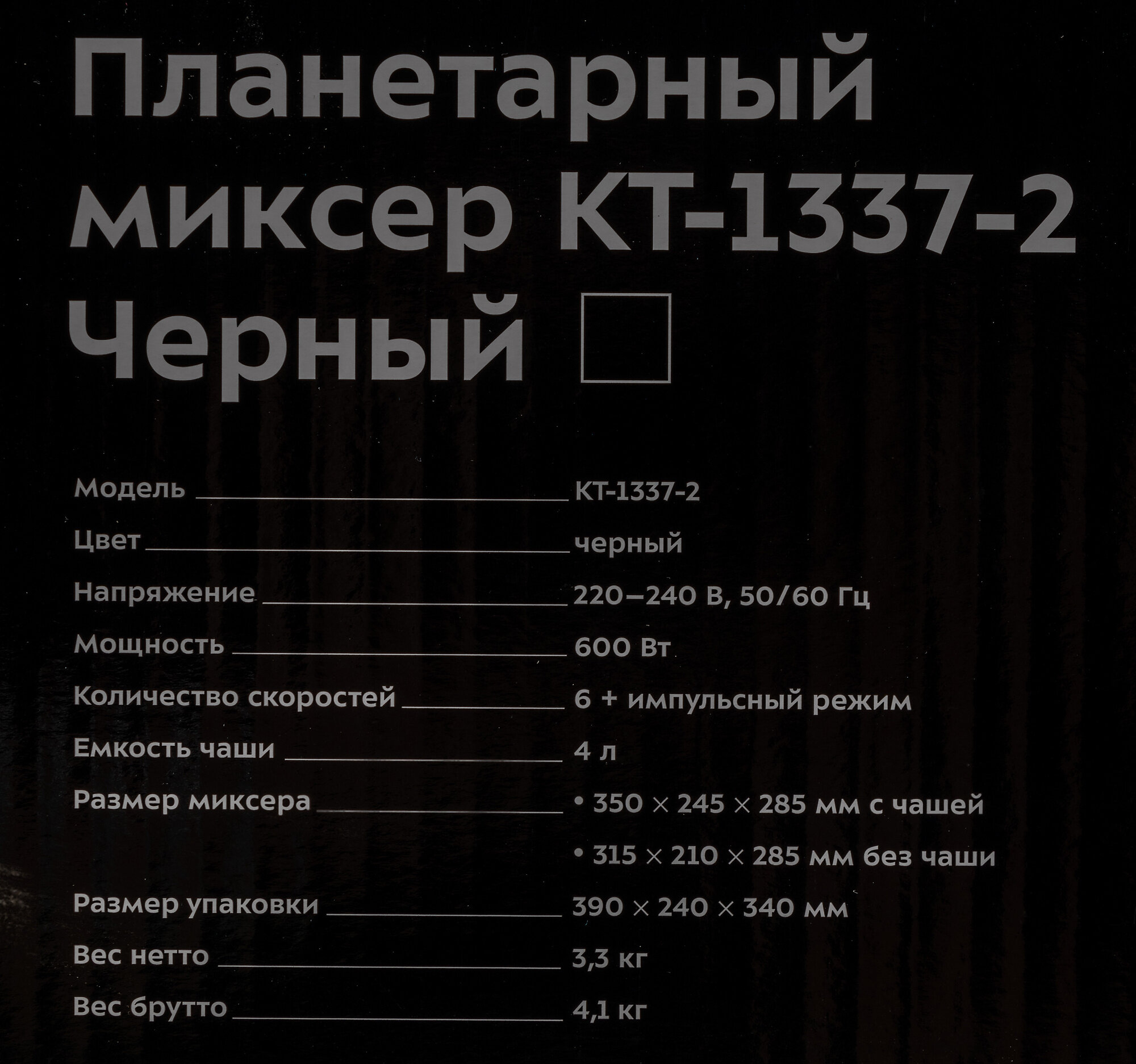 Миксер Kitfort КТ-1337-2 планетарный, черный .
