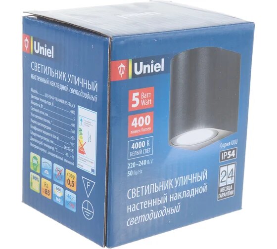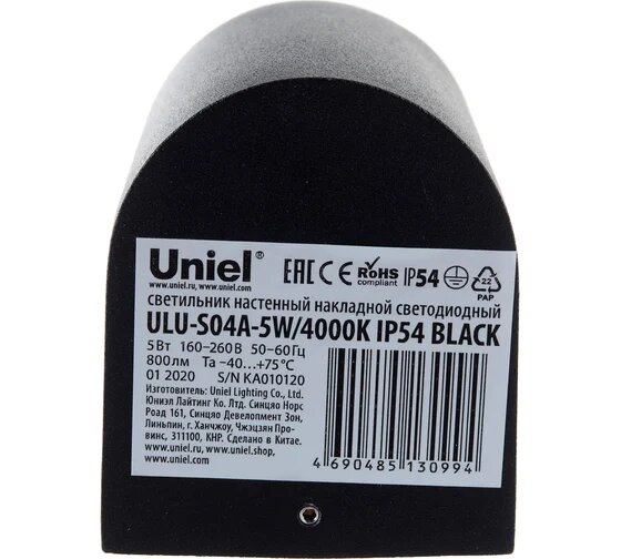 Типы/Уличное освещение/Уличные настенные Uniel Уличный настенный светодиодный светильник Uniel ULU-S04A-5W/4000K IP54 Black UL-00006805
