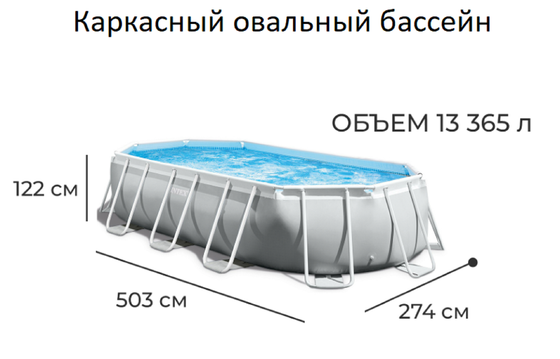 Бассейн INTEX PRISM FRAMETM OVAL, каркасный, прямоугольный, 503х274x122см, электрический насос 220В