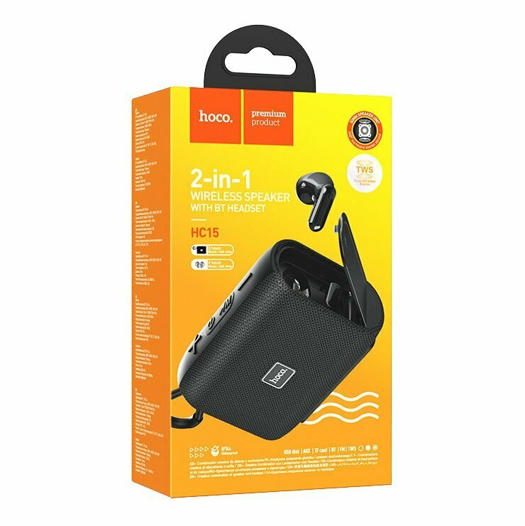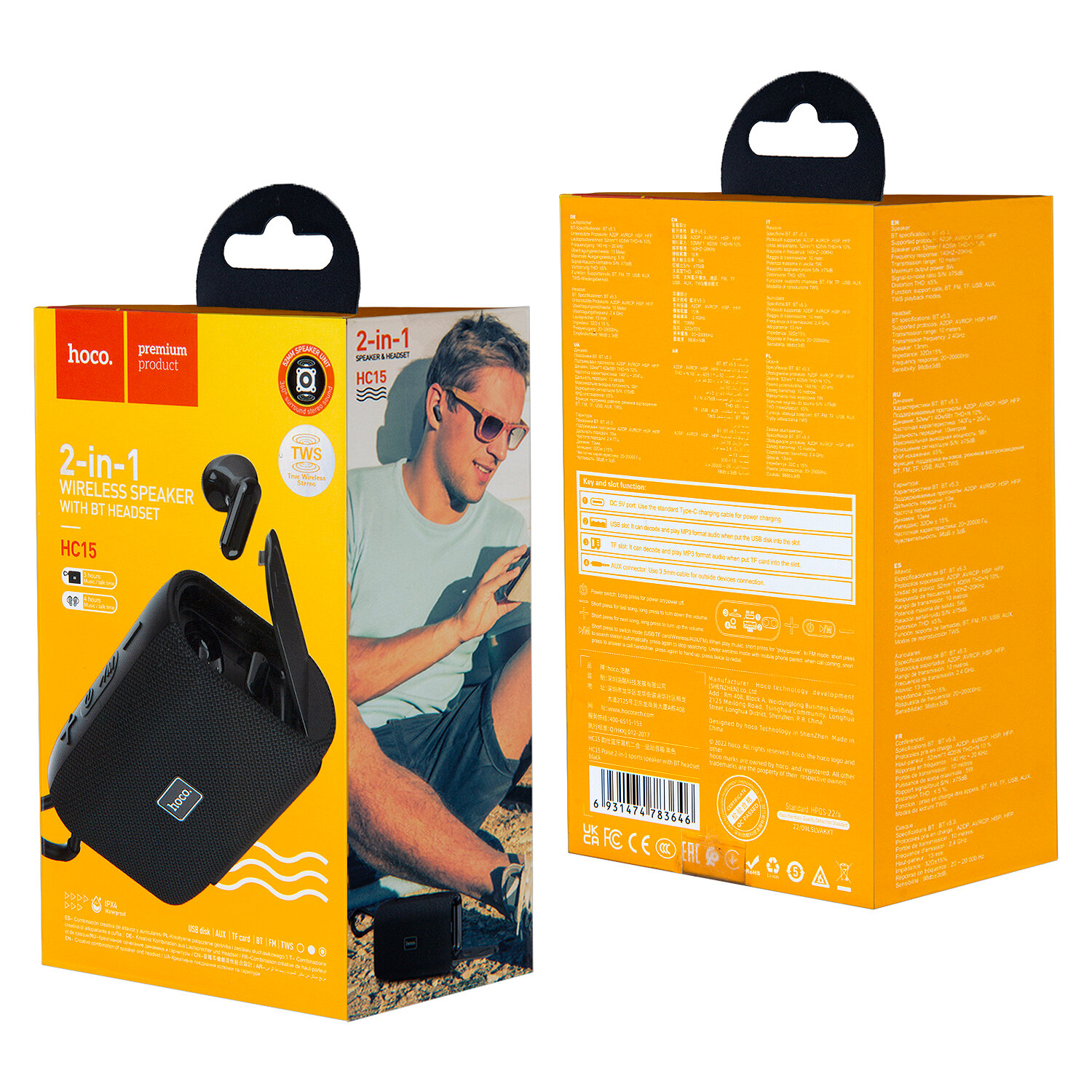 Акустика портативная (Bluetooth) Hoco HC15 Poise (2 в 1) + наушники, черный